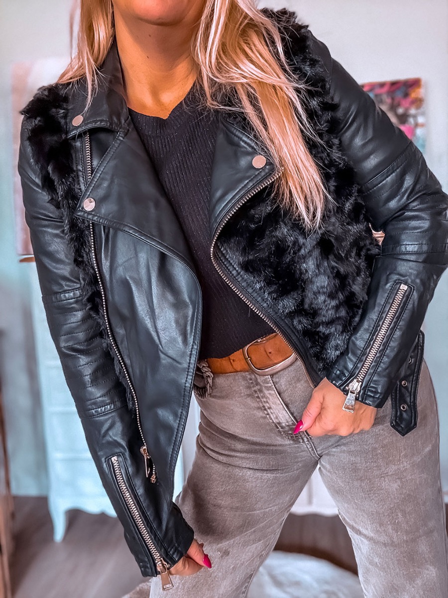 🖤 Perfecto bi-matière cuir & fausse fourrure –
