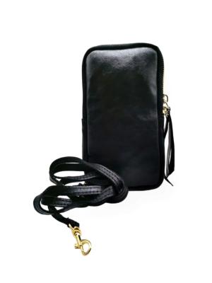 Découvre l'élégance intemporelle de la pochette noire pour téléphone. Cette pièce raffinée incarne le mariage parfait entre style contemporain et artisanat traditionnel. Fabriquée avec soin à partir de cuir de haute qualité d'Italie, la pochette arbore une finition brillante qui capte la lumière de manière subtile.