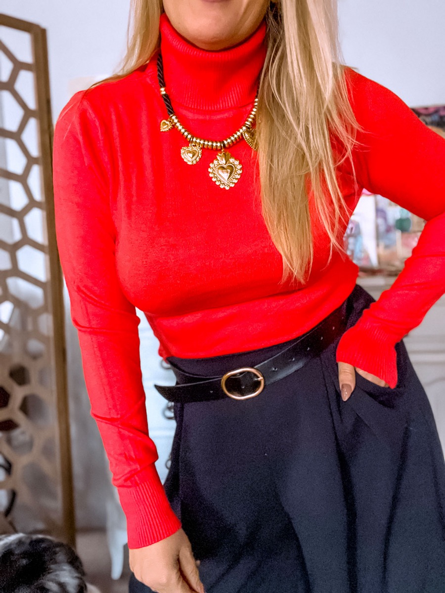 pull col roulé femme, pull rouge femme, pull doux hiver, pull fin femme chic, pull tendance 2025